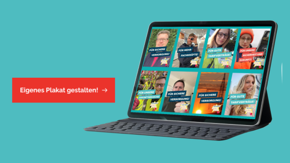 Unterstütze die Forderungen unserer Tarifbewegung in der privaten Energiewirtschaft, indem Du Gesicht zeigst! Es ist ganz einfach: Lade ein Bild von Dir hoch, wähle eine Botschaft aus und sei Teil unser Online-Demo!